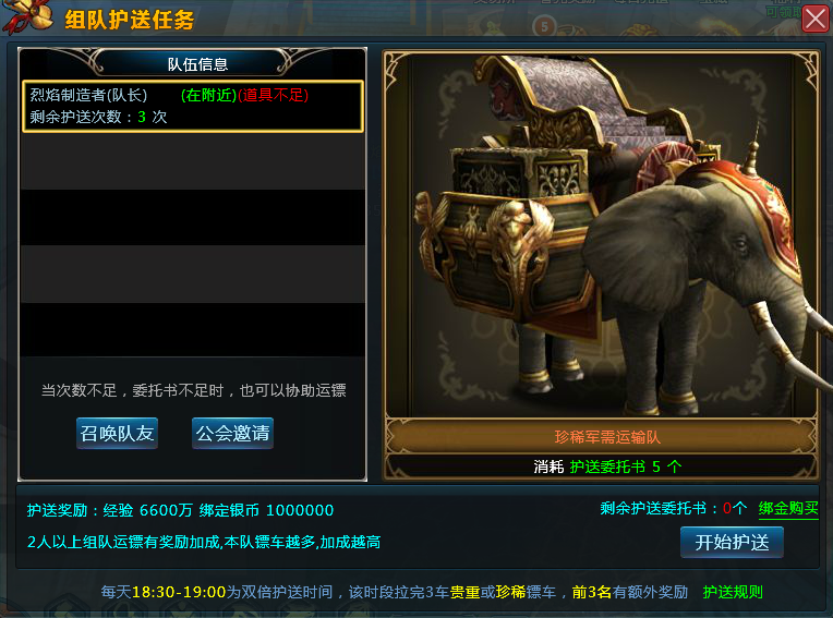 1、 双倍时间为每天18:30-19:00,该时段拉完3车贵重或者珍稀镖车,前3名有额外奖励