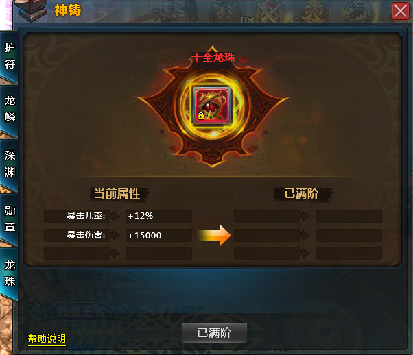 龙珠:可通过商城购买或者遗迹战场活动获得,主要提升人物的暴击几率和暴击伤害
