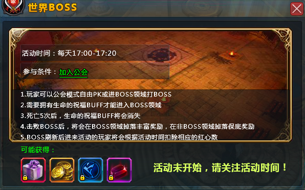 5、 BOSS刷新后进来活动的玩家将会根据活动时间扣除相应的红心数