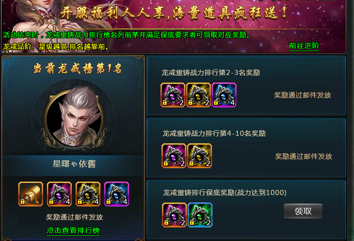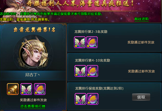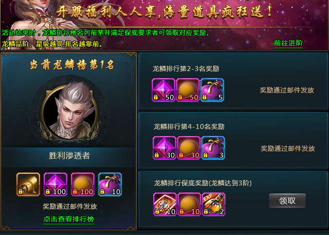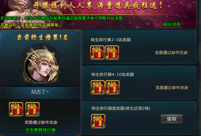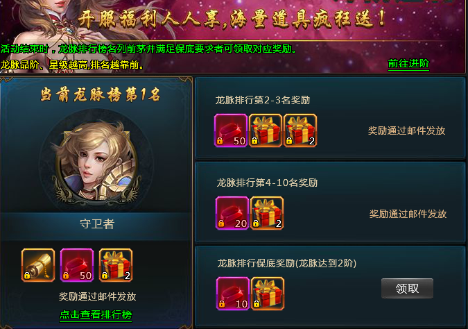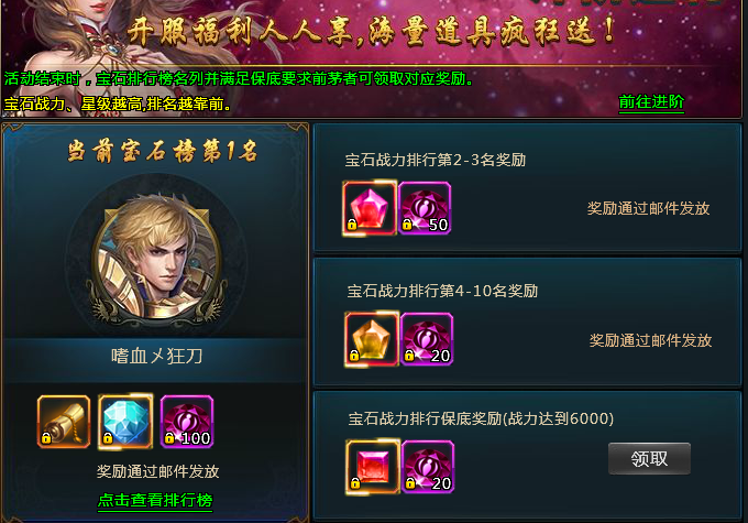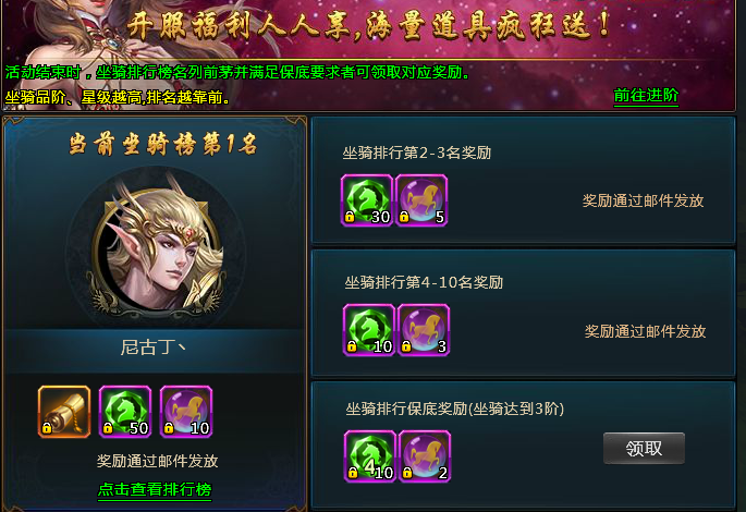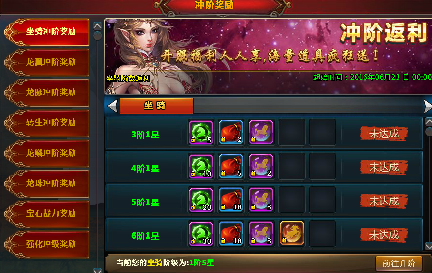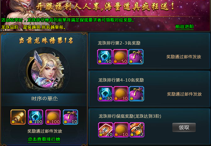 活动期间,达到对应的阶数即可领取对应的冲阶奖励,每个档次可领取1次