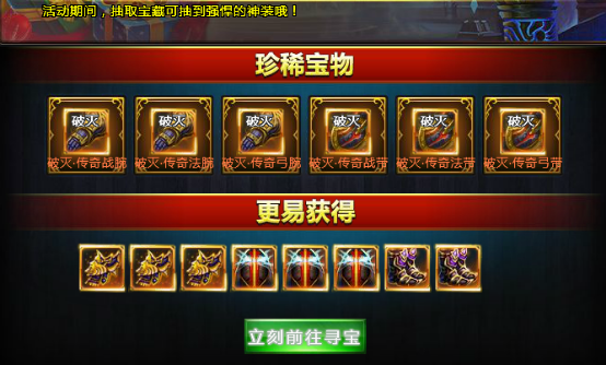 活动期间,玩家可通过宝藏抽取饰品神装哦。