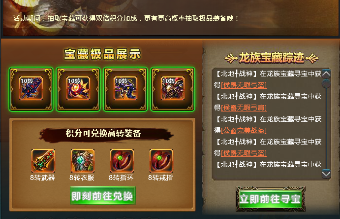 活动期间,在宝藏进行寻宝,即可获得双倍积分加成哦!