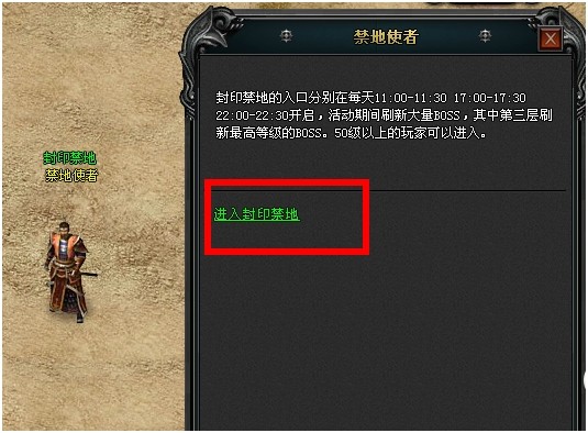 活动开始后,玩家可以通过在土城NPC“封印禁地”进入活动场景: