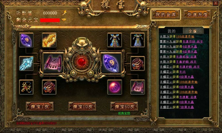 小编提醒:探宝分1次、10次、50次,玩家根据自身需求来选择探宝次数。若玩家连续探宝都探不出好东西的时候,小编建议玩家过段时间再继续去挖宝,切忌不断连续探宝。