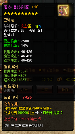 杀神修炼到对应等级才可以装备对应暗器,暗器可以通过能量进行兑换!