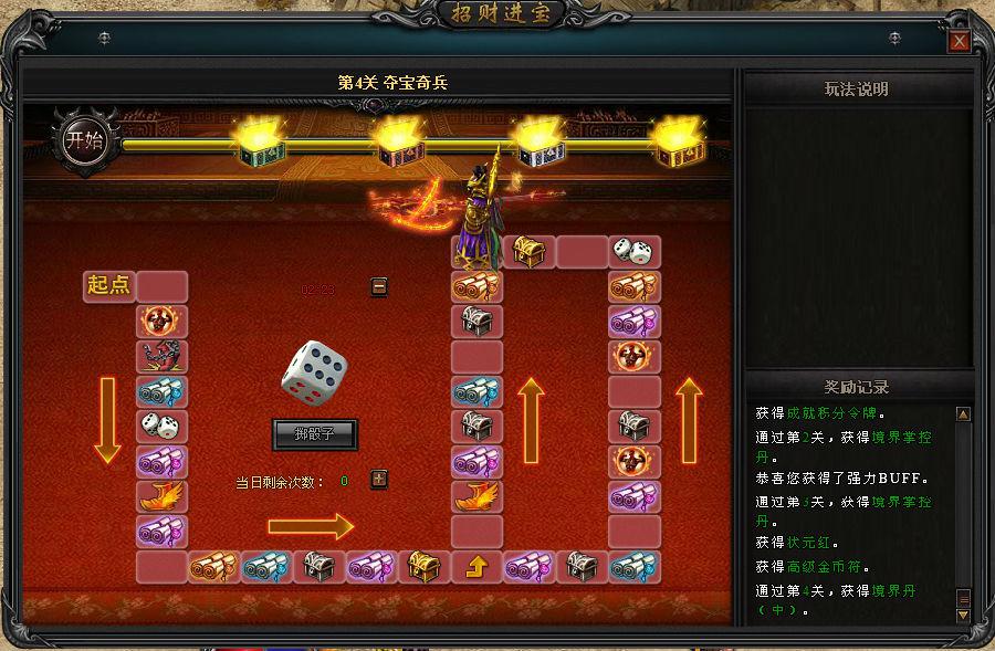 3) 每次投掷成功后,需要4分钟冷却时间后,才可进行下一次投掷,玩家也可以花费元宝清零冷却时间;