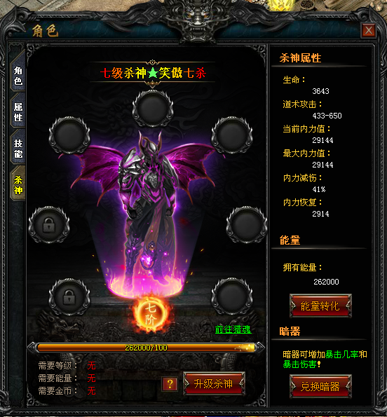 杀神等级达到3级后开放杀神猎魂系统,可通过杀神界面前往猎魂链接打开猎魂界面。
