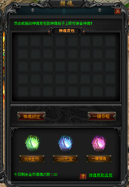 使用金币以及元宝猎魂可以获得并升级神魂。