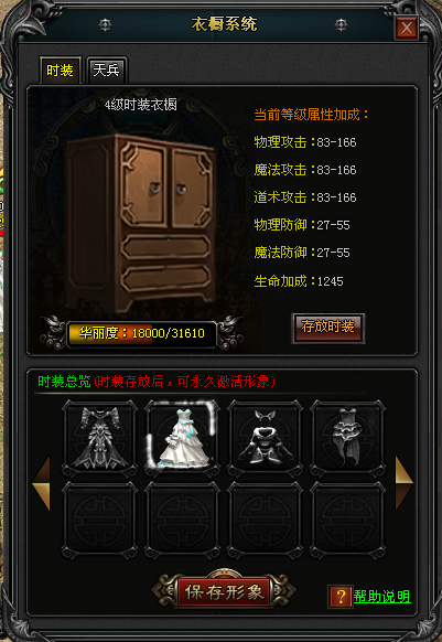 通过存放时装不但能永久获得华丽时装外形以及强大属性,同时更能提升衣橱等级,轻松愉快!绝对是福利有木有!