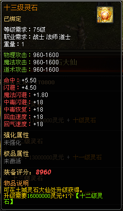 新增十三、十四级灵石,属性更给力! 可以在土城灵石大仙处升级获得!