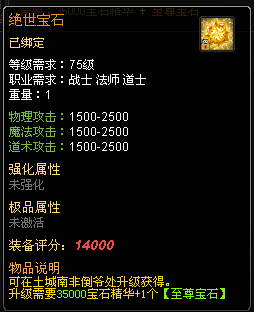 新增十一级宝石—绝世宝石,可在土城南非倒爷处升级获得!