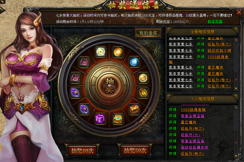 图标即可参与活动,每次抽奖花费1000元宝,可获得极品橙魂宝箱、10级黑水晶、1000战魂卷、星芒魔珠等极品道具
