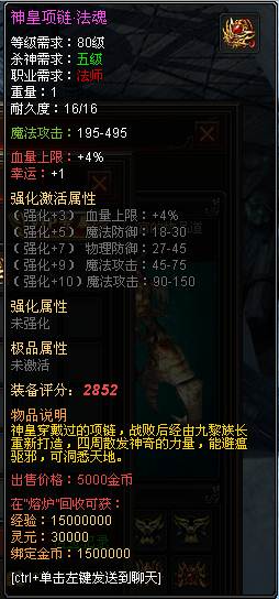 随着神皇重现的危机出现,神皇的装备也出现在七杀大陆之上,传说神皇穿戴的装备,战败后由九黎族长重新打造,四周散发神奇的力量,能避瘟驱邪,可洞悉天地