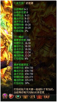1) 定义:结婚后夫妻间才有,可自动激活一定的婚姻BUFF状态,可获得属性加成和打怪经验加成(需夫妻组队才有效),亲密度等级越高,属性加成和经验加成越高