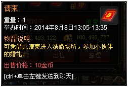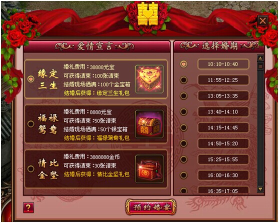 4、 举办婚礼:婚礼预约→到达预约时间,进入结婚场景→开始婚礼→打怪,拾取宝箱