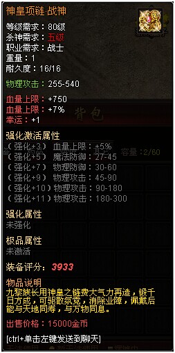 强化11系统开启,使用11级黑水晶可以将已经强10装备进行强化,强化之后不但能获得相应的强化以及强化激活属性,更能将装备进化为【圣】级装备,强大无比的属性,您值得拥有!