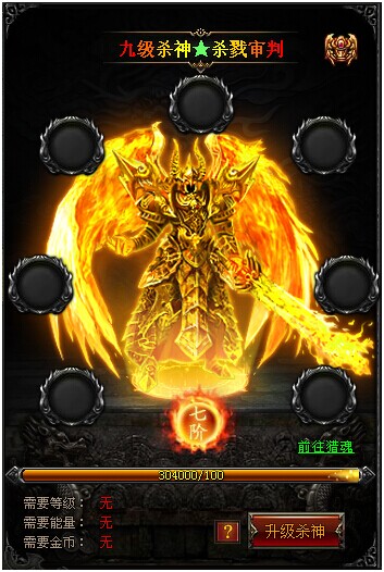 新增加九级杀神等级,可由八级杀神增加能量进行升级!同时升级至九级杀神之后将会开启第七个神魂装备位!