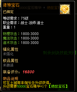 全新推出十二级宝石-诸神宝石,消耗宝石精华可以在土城NPC南非倒爷处升级获得,更高属性值得拥有!