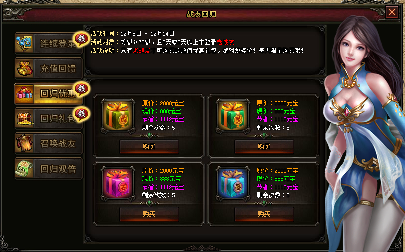 活动四:回归礼包