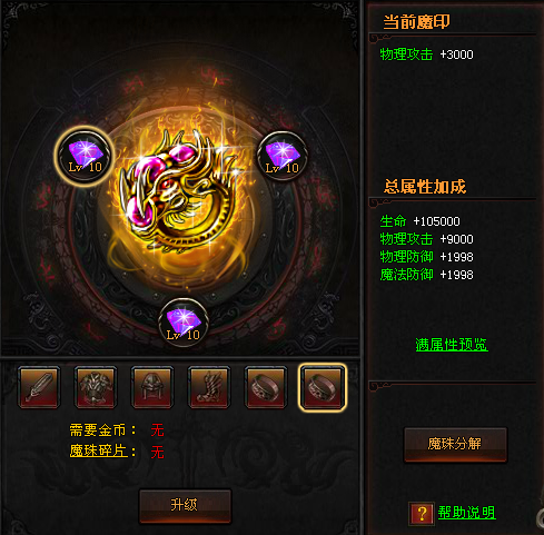 新增魔印两个戒指部件,通过消耗魔珠碎片进行升级,可获得大量属性。