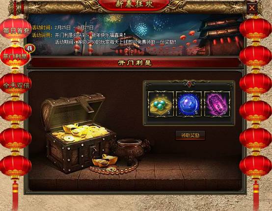 活动内容:开门利是迎偷菜,新年快乐福喜来!活动期间,等级≥50的玩家每天上限即可免费领取一份奖励!