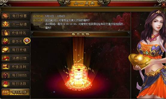【活动内容】:活动第一天,全天双倍烤火!活动期间,每天14:00 – 18:00,可享受打怪获得经验和符文值双倍加成的福利!