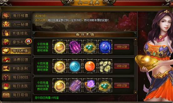 【活动说明】:每日充值达到一定金额,即可获得丰厚奖励!