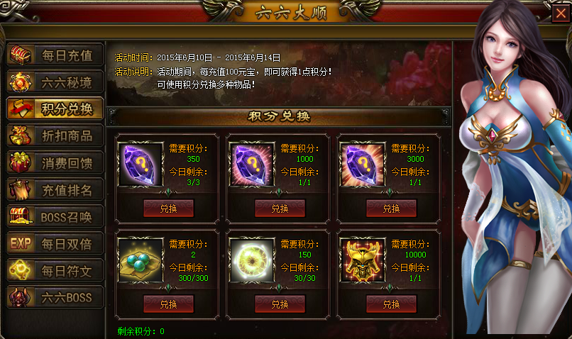 【活动说明】:活动期间,每充值100元宝,即可获得1点积分!