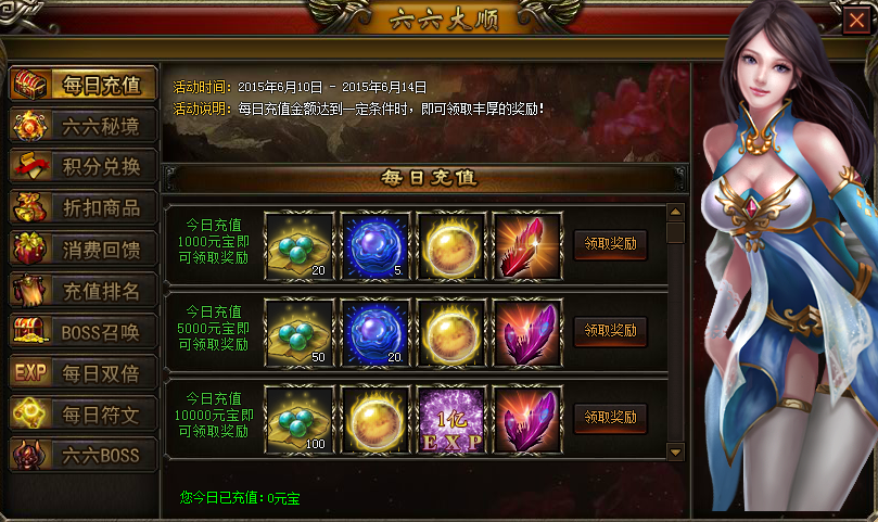 【活动说明】:每日充值达到一定金额,即可获得丰厚奖励!