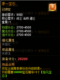 新增高级宝石——泰一宝石,更强大的纯攻击属性,是您提升战力和PK的首选,保证您在PK中,火力输出强劲。