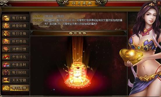 【活动内容】:活动期间,每天14:00 – 18:00,可享受打怪获得经验和符文值双倍加成的福利!活动第1天,更可享受全天烤火双倍!