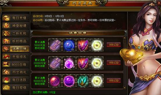 【活动说明】:活动期间,每天击杀怪物获得的符文值达到50000、100000、200000、300000时,即可获得大量的符文值奖励!