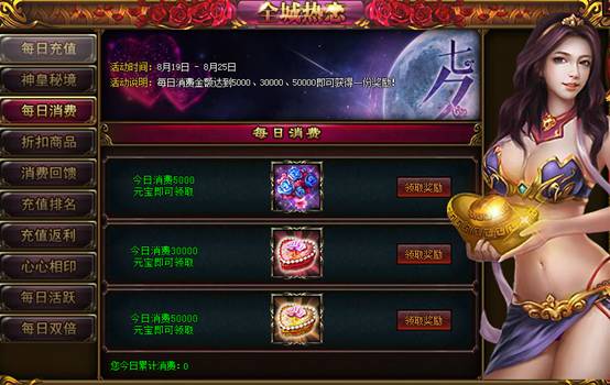 【活动说明】:,每日消费金额达到5000、30000、50000即可获得一份奖励