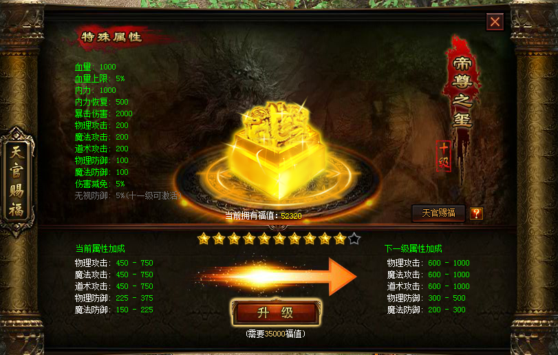 新增十一级福印——传国之玺,属性更强大,特殊属性更是无与伦比的无视防御,助您PK输出更高,PK更爽,实乃提升战力的不二选择!