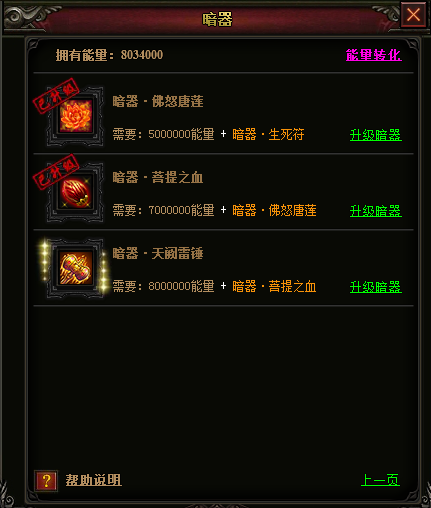通过杀神界面的能量转化,可以将经验转化为能量,也可以通过参与活动获得并使用能量丹获得能量。