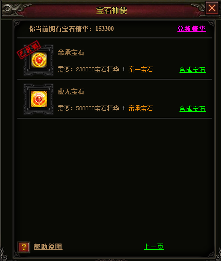 使用一定数量的宝石精华,即可在土城NPC【南非倒爷】处兑换和升级宝石。宝石精华可以通过使用道具宝魂珠获得,击杀高级BOSS或在商城购买均可获得宝魂珠。