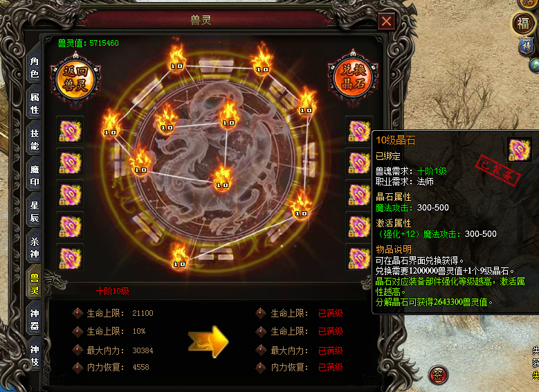 全新推出十级兽魂和十级晶石。更强的属性,更高的战力,您还等什么,赶紧升级吧!