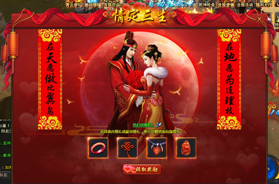 结缘成功后婚礼奖品自动发送至背包