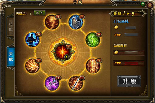 2、玩家需要通过消耗经验和黄金来获得天赋技能点。
