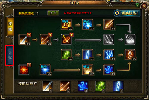 3、天赋技能点用来升级学习天赋技能,