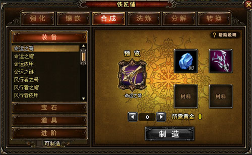4、合成分为四类,装备、宝石、道具均为获得所需材料便可以进行合成;