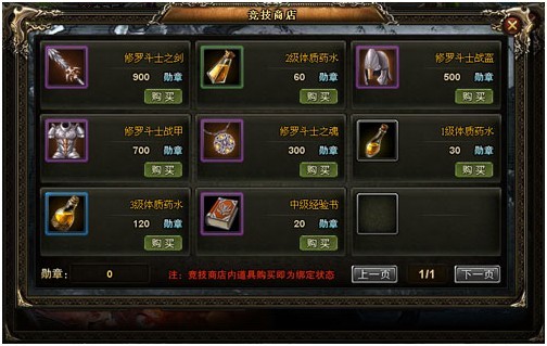 先说下勋章的用途,勋章是用来在竞技商店兑换稀有高品质装备和道具的,可以看出,竞技商场中所出售的稀有装备是在副本所打不到的,非常罕见。还有其他的一些道具,也是在商场无法买到的。十分难得。