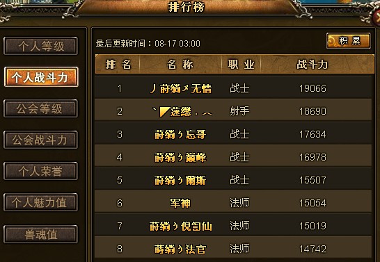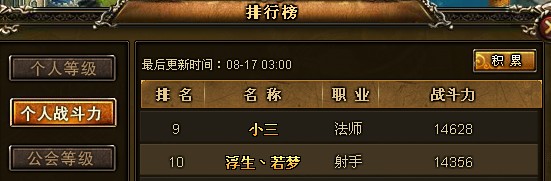 战斗力达到10000并且排名在前十的玩家奖励: