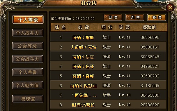| 公会名称 | 会长角色名 | 公会等级 |