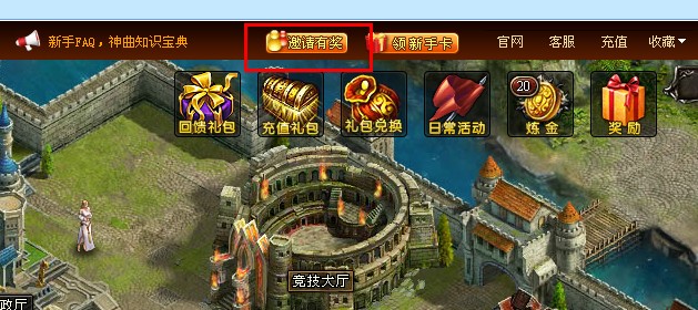 1、在神曲游戏(神曲客户端除外)上方会有功能按钮,点击最上方的【邀请有奖】