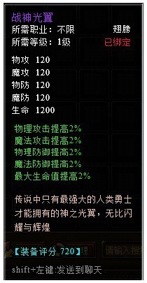 奖励一、专属战神之翼1个