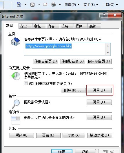 4.打开IE的工具internet选项,选择常规,点击设置按钮