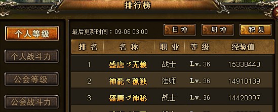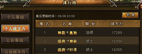 | 战斗力排名第一 | 战斗力排名第二 | 战斗力排名第三 |
