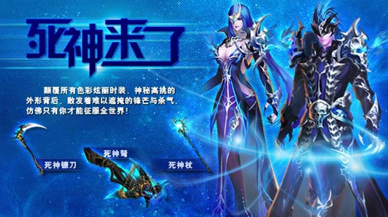 死神来了?你是否想过拥有一身高贵、深情而充满酷感的死神套装?你是否喜欢华丽的外衣、性感的面具、富有诡异之气的披风……而这一切,将在IS《神曲》V1.50版时装秀上,为你呈现富丽优雅,同时又性感撩人的“死神时尚”!