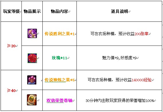 温馨提示:≥40级的玩家可以领取20、40级两份礼包,礼包道具均为绑定。